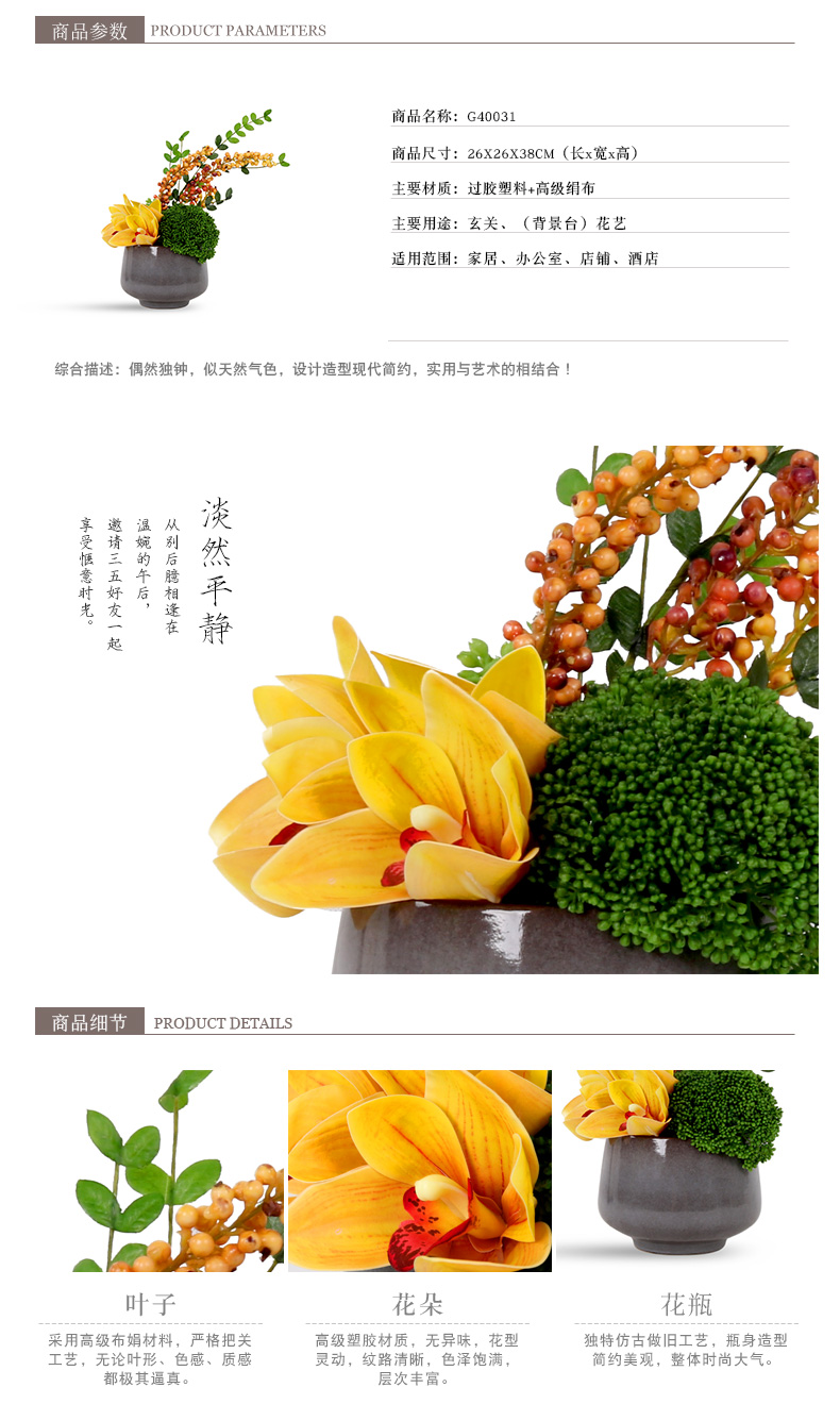 克瑞瑅新中式前台转角客厅装饰仿真花软装饰品摆件 G50037