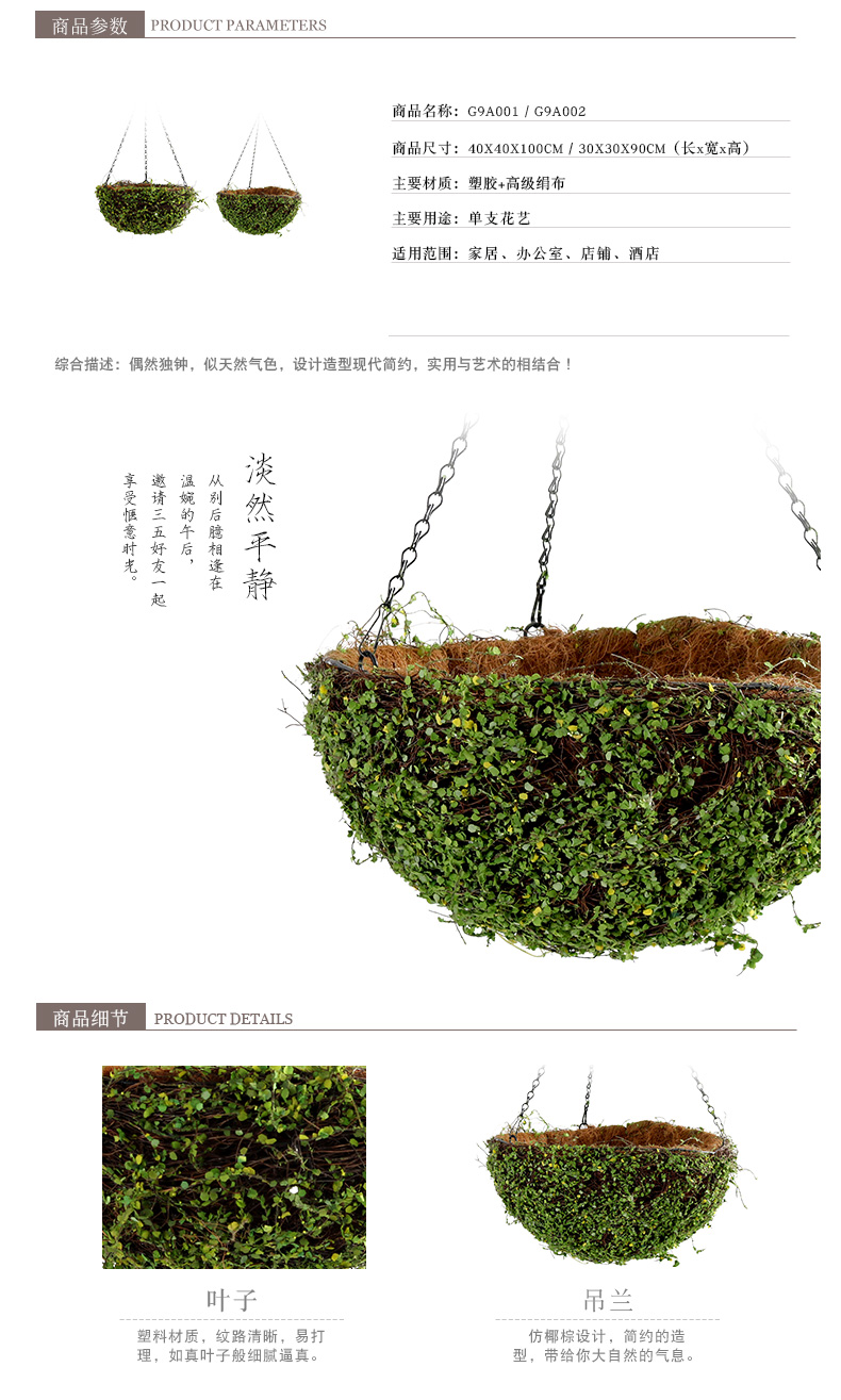 克瑞瑅原生态挂叶客厅装饰仿真花软装饰品摆件 G9A001