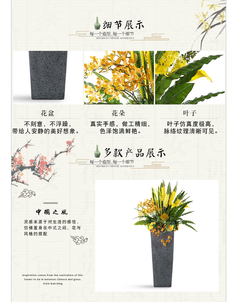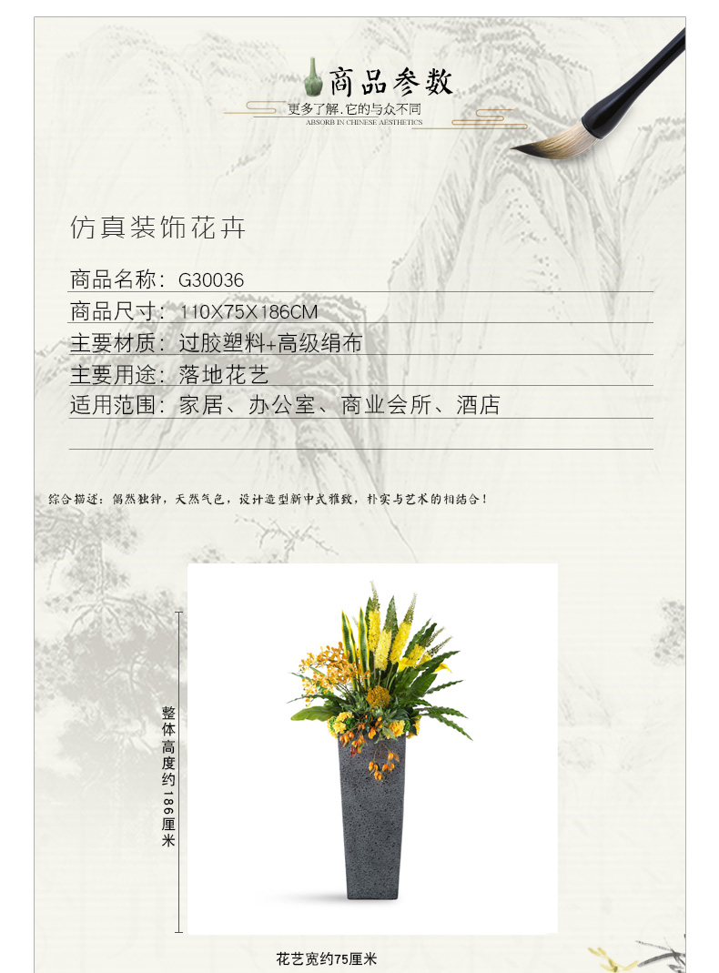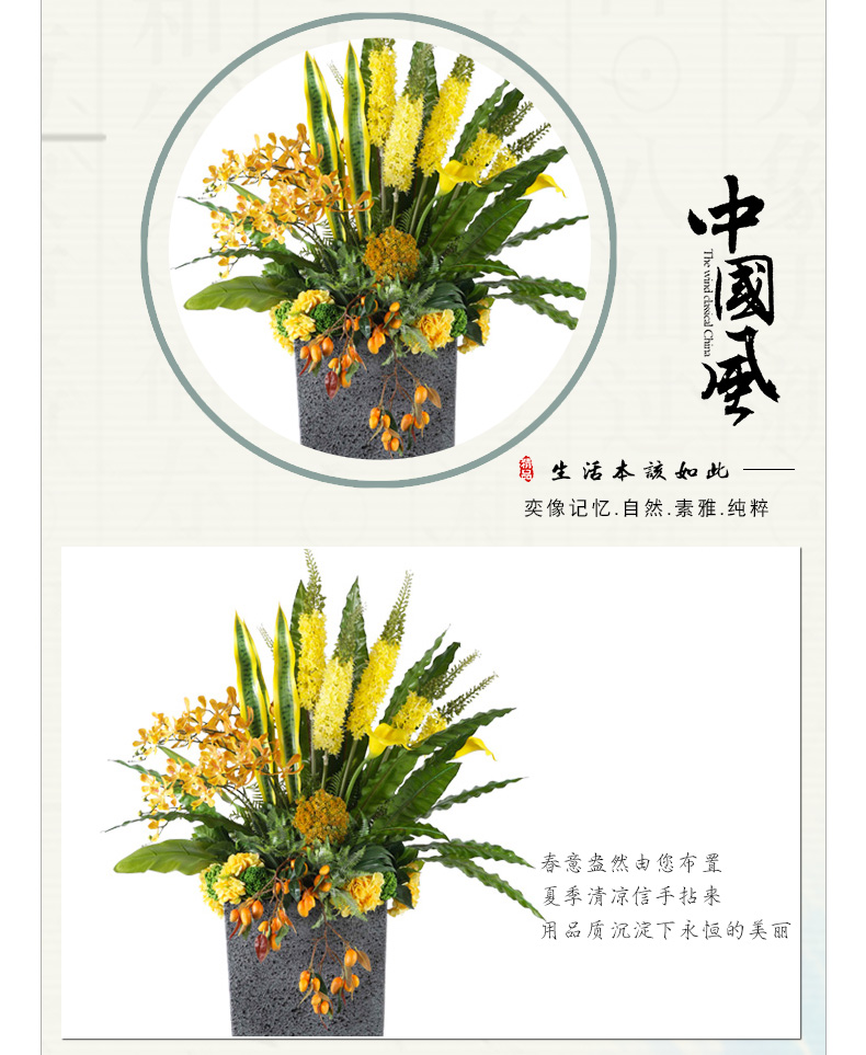 克瑞瑅新中式落地花艺客厅装饰仿真花软装饰品摆件 G30036