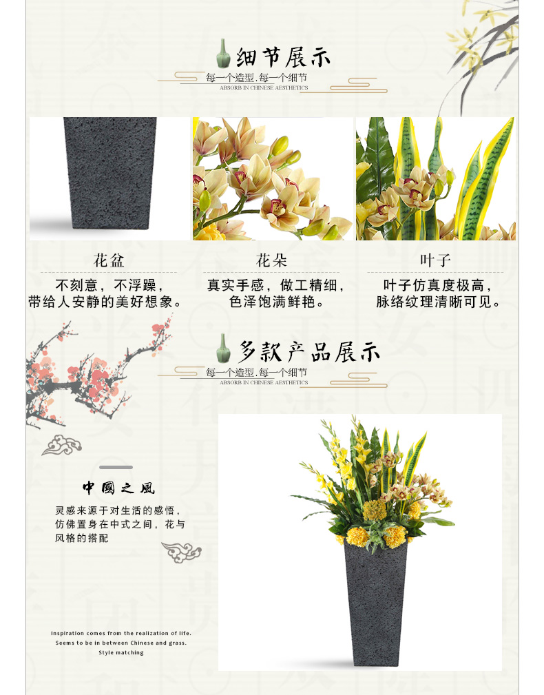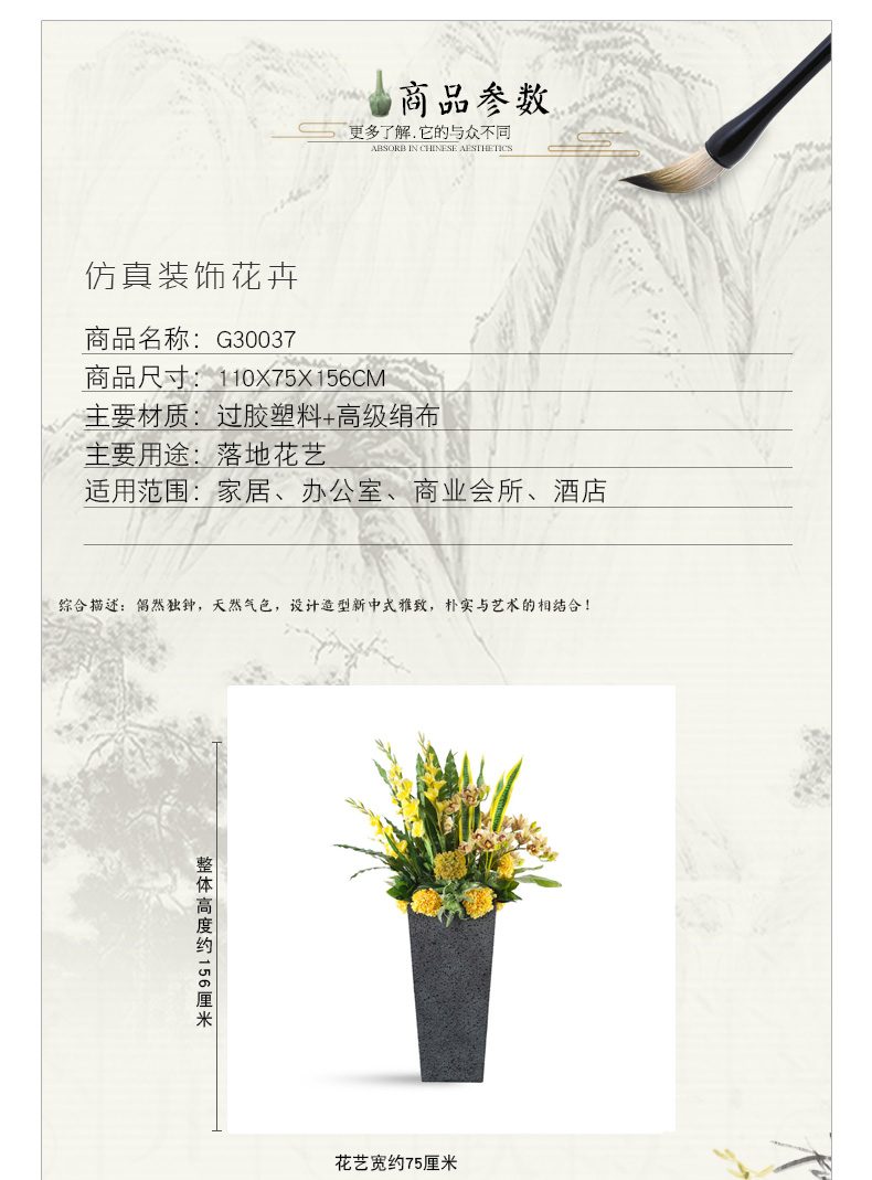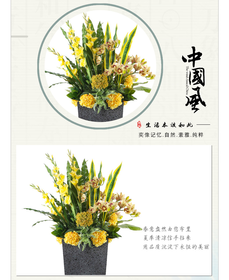 克瑞瑅新中式落地花艺客厅装饰仿真花软装饰品摆件 G30037