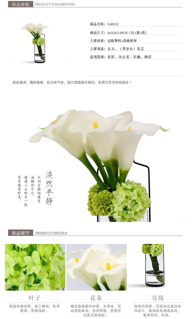 克瑞瑅现代简约玄关背景台客厅装饰仿真花软装饰品摆件 G40032