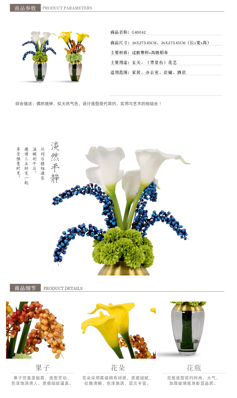 克瑞瑅现代简约玄关背景台客厅装饰仿真花软装饰品摆件 G40042