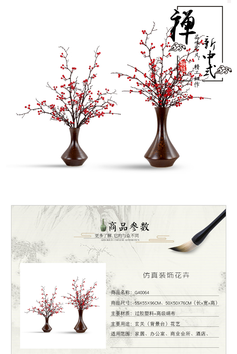克瑞瑅新中式玄关背景台客厅装饰仿真花软装饰品摆件 G40064