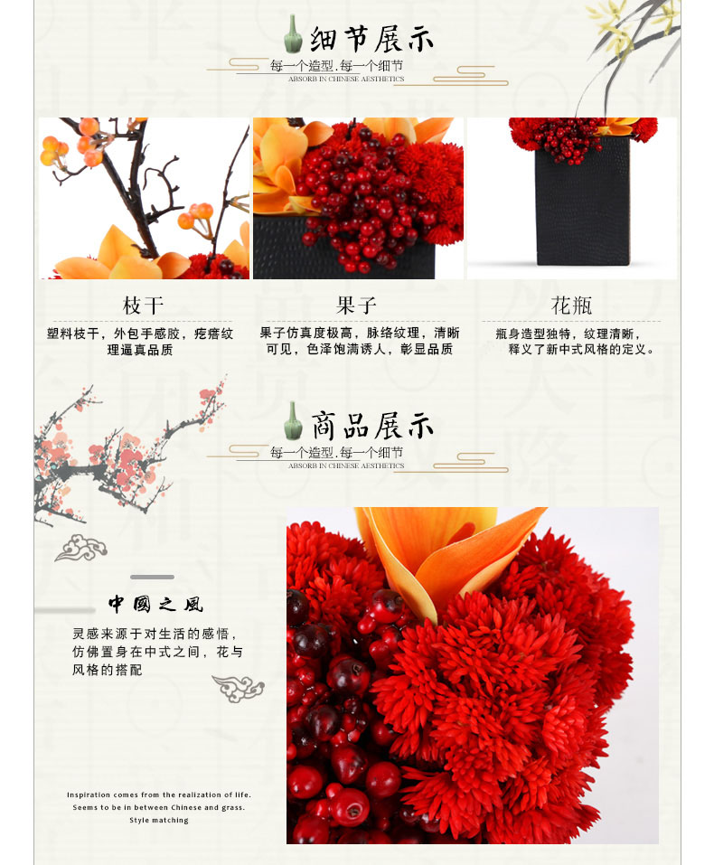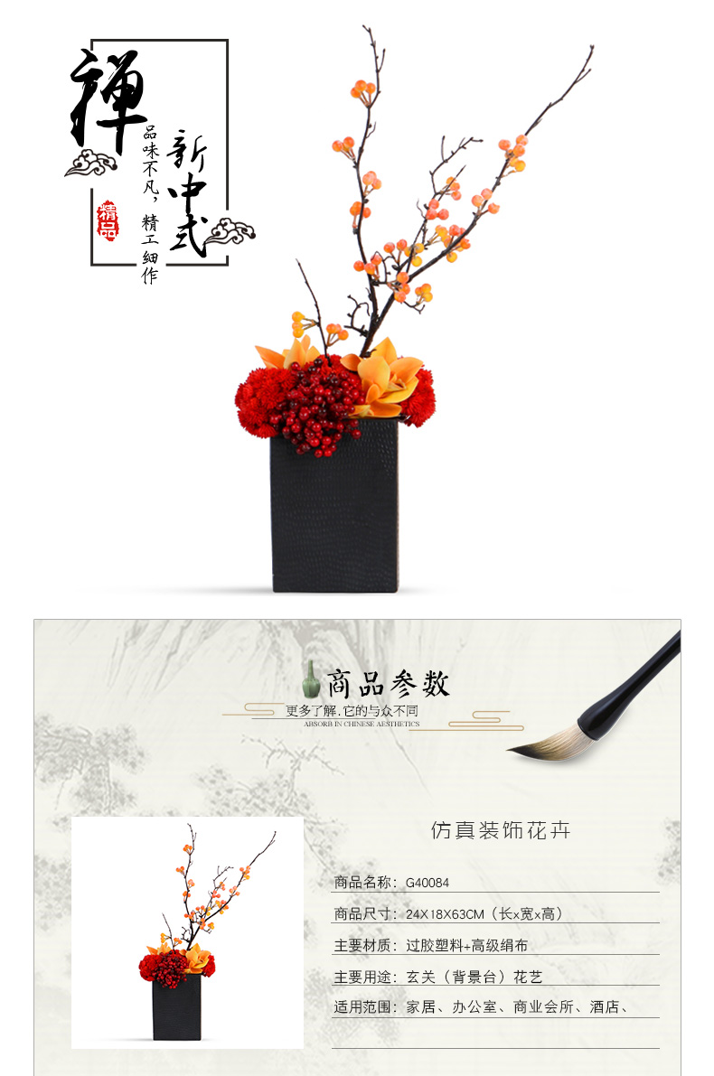 克瑞瑅新中式玄关背景台客厅装饰仿真花软装饰品摆件 G40084