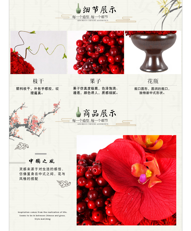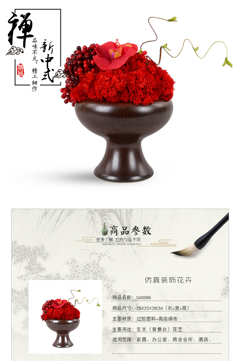 克瑞瑅新中式玄关背景台客厅装饰仿真花软装饰品摆件 G40185