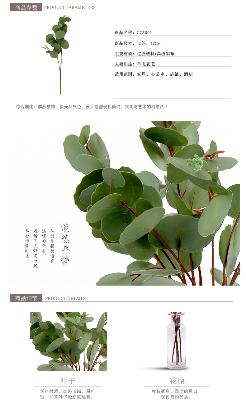 克瑞瑅原生态叶材单枝客厅装饰仿真花软装饰品摆件 G7A001